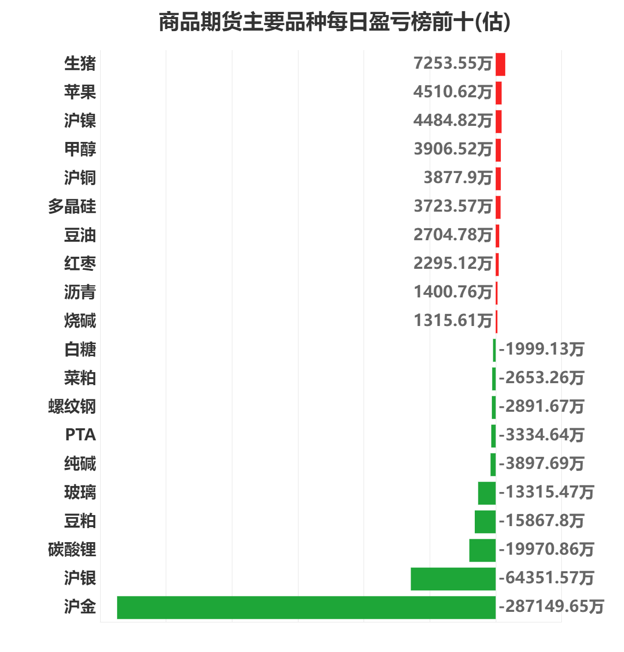 今日商品期货上榜机构席位中生猪盈利第一,为 7253.55 万元。