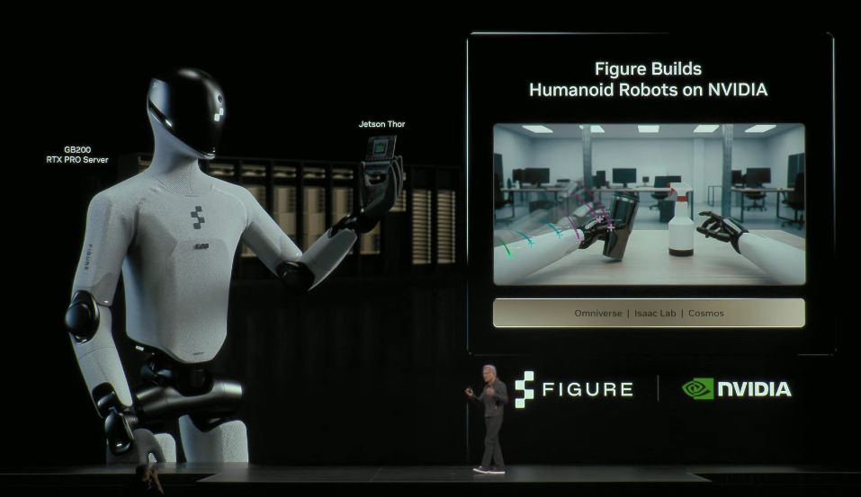 在备受投资者关注的 「物理 AI」 方面,黄仁勋的演讲主要放在 Omniverse 数字孪生技术上,包括利用该技术构建现代工厂,以及训练和打造机器人。其中机器人初创公司 Figure 宣布与英伟达开展合作,加速下一代人形机器人研发。Figure 正在使用英伟达加速计算构建其 Helix 视觉-语言-动作模型,并采用 Isaac 平台进行仿真和训练。