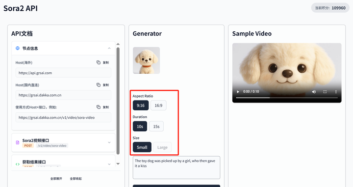 二、GrsAi APi 一键生成无水印 Sora2 视频