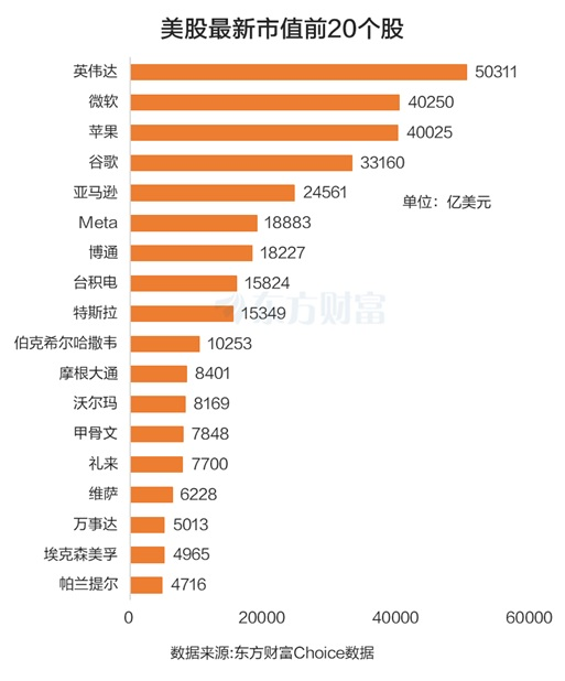 隔夜美股英伟达股价再创历史新高,收盘时上涨 2.99%,最新市值达 5.03 万亿美元,成为全球第一家市值超 5 万亿美元的上市公司。