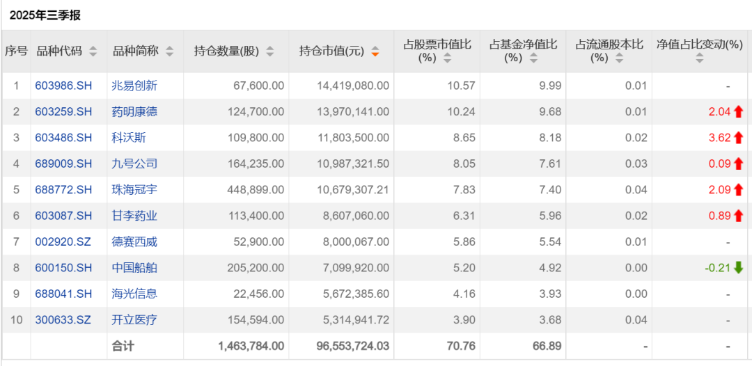 具体来看,截至三季度末,兆易创新、德赛西威、海光信息、开立医疗成为南方中国梦混合基金新进前十大重仓股。
