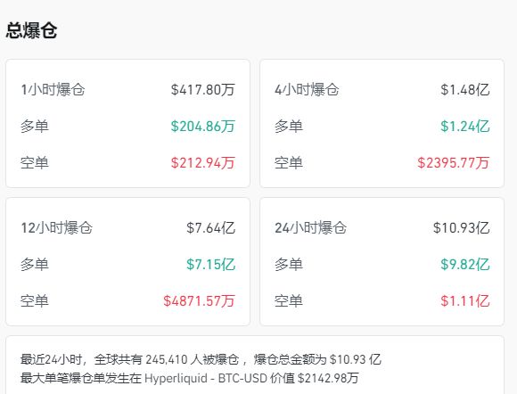 受此影响,过去 24 小时内,全球加密货币市场共有超过 24 万人爆仓,爆仓金额达 10.93 亿美元 (约合人民币 78 亿元)。