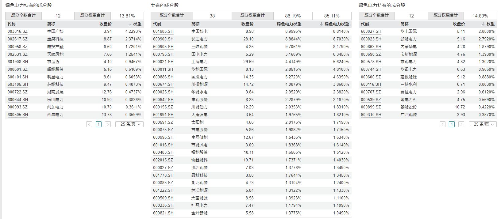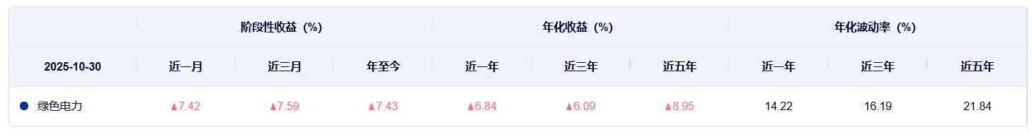 再从过往表现来看,近一年,国证绿色电力指数的收益高于中证绿色电力指数;不过,近三年和近五年,中证绿色电力指数的年化收益又高于国证绿色电力指数。