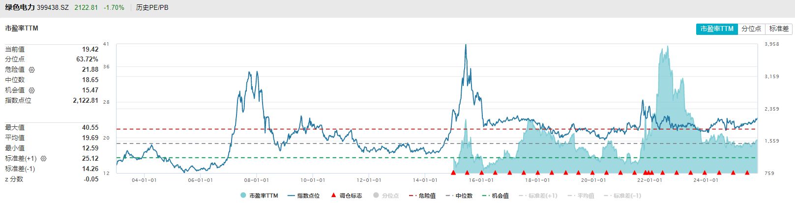 最后再看两个指数目前的估值水平,Wind 数据显示,国证绿色电力指数目前的市盈率 TTM 回升到了历史 60% 分位以上,而中证绿色电力指数目前的市盈率 TTM 还在历史 40% 分位以下。