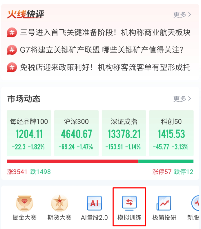 此外,为了激励股民捕捉市场热点、提升波段交易、股票组合投资的能力,每日经济新闻 App 举办了掘金大赛,目前已经举行了 70 多期比赛,股民通过参赛就可以领取报名福利,还可以向高手学习投资技巧。大赛为模拟炒股,模拟资金 50 万元。每期比赛结束,正收益就获现金奖励!还可冲刺月度积分王大奖!