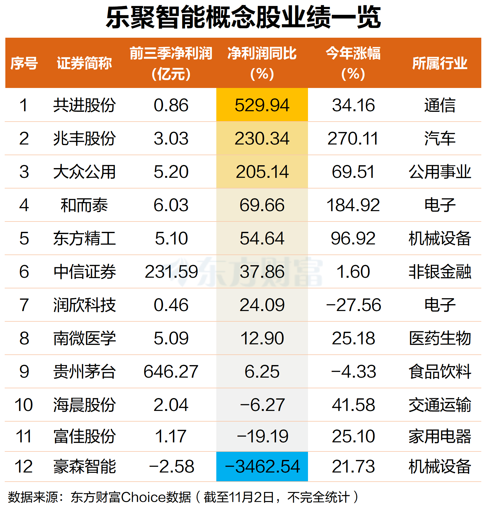 从股价表现看,其中多家公司年内股价出现大涨。截至 11 月 2 日,兆丰股份年内已涨超 270%,和而泰涨超 184%,东方精工涨超 96%,大众公用涨超 69%,海晨股份涨超 41%,共进股份涨超 34%,富佳股份、豪森智能涨超 20%。