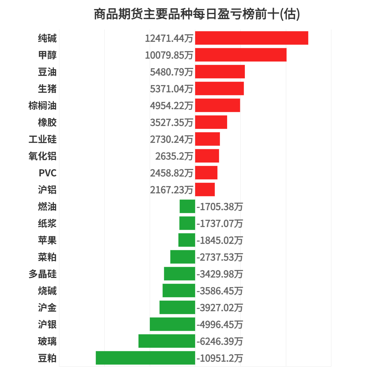 今日商品期货上榜机构席位中纯碱盈利第一,为 12471.44 万元。