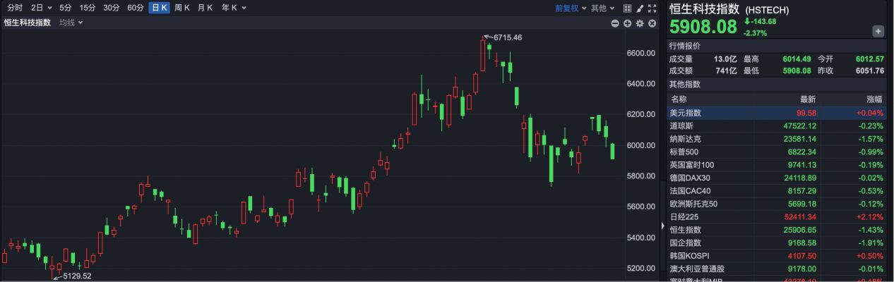 恒生科技指数报收于 5922.48 点,上涨 14.40 点,涨幅 0.24%。