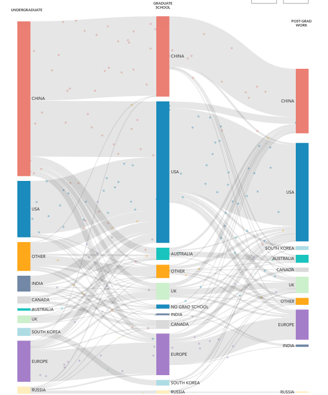 值得注意的是,这些数字背后,是一条清晰而稳定的顶级 AI 人才输送管道: 中国顶尖高校本科+美国顶尖学府博士=全球顶级 AI 研究者 。