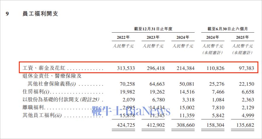 截至 2025 年 6 月 30 日,享道出行共有 667 名全职员工,但其并未具体披露历年的员工数量对比。不过,从历年的员工福利开支情况来看,员工整体的工资等福利开支处于逐年缩减的态势。从工资、薪金及花红来看,2022 年至 2025 年上半年,分别为 3.14 亿元、2.96 亿元、2.14 亿元、9738 万元 (2024 年上半年为 1.11 亿元)。这意味着享道出行要么裁撤了部分员工,要么对员工进行了降薪。