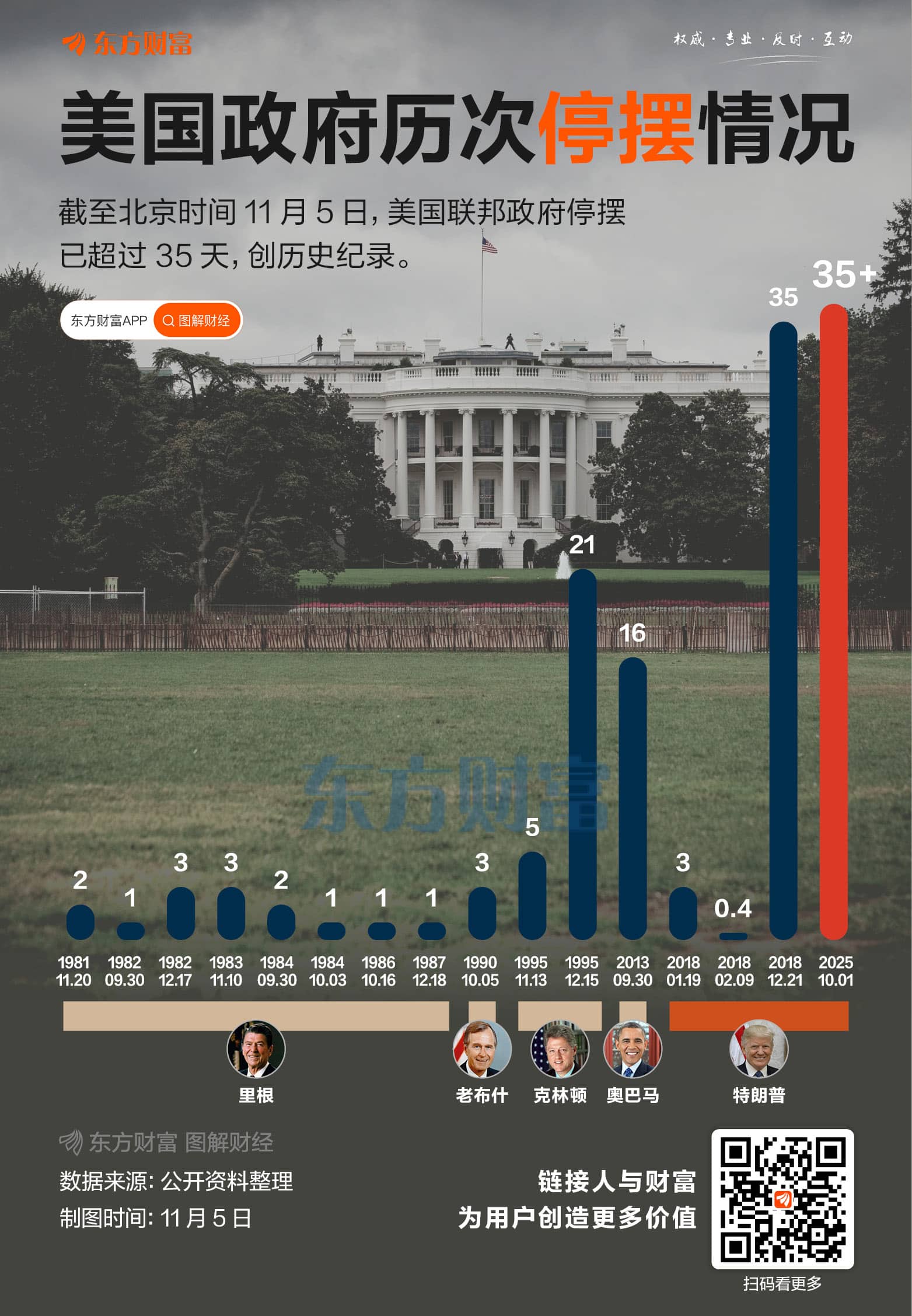 截至北京时间 11 月 5 日,美国联邦政府 「停摆」 已进入第 36 天,打破 2018 年年底至 2019 年年初 「停摆」35 天的历史纪录,成为美国持续时间最长的政府 「停摆」。
