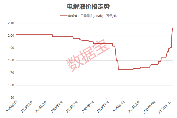 电解液价格上涨近 20%