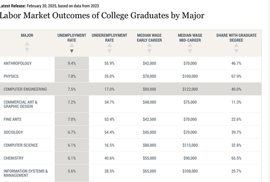 初级软件工程师,现在是就业市场上的老大难。纽约联邦储备银行今年 4 月发布的 《大学毕业生就业调查》 显示:如今美国计算机工程专业的毕业生的失业率高达 7.5%,在所有专业中排名第三,而计算机科学毕业生的失业率高达 6.1%,甚至远远高于原本被认为不好找工作的艺术史和新闻学专业 (分别为 3% 和 4.4%)。