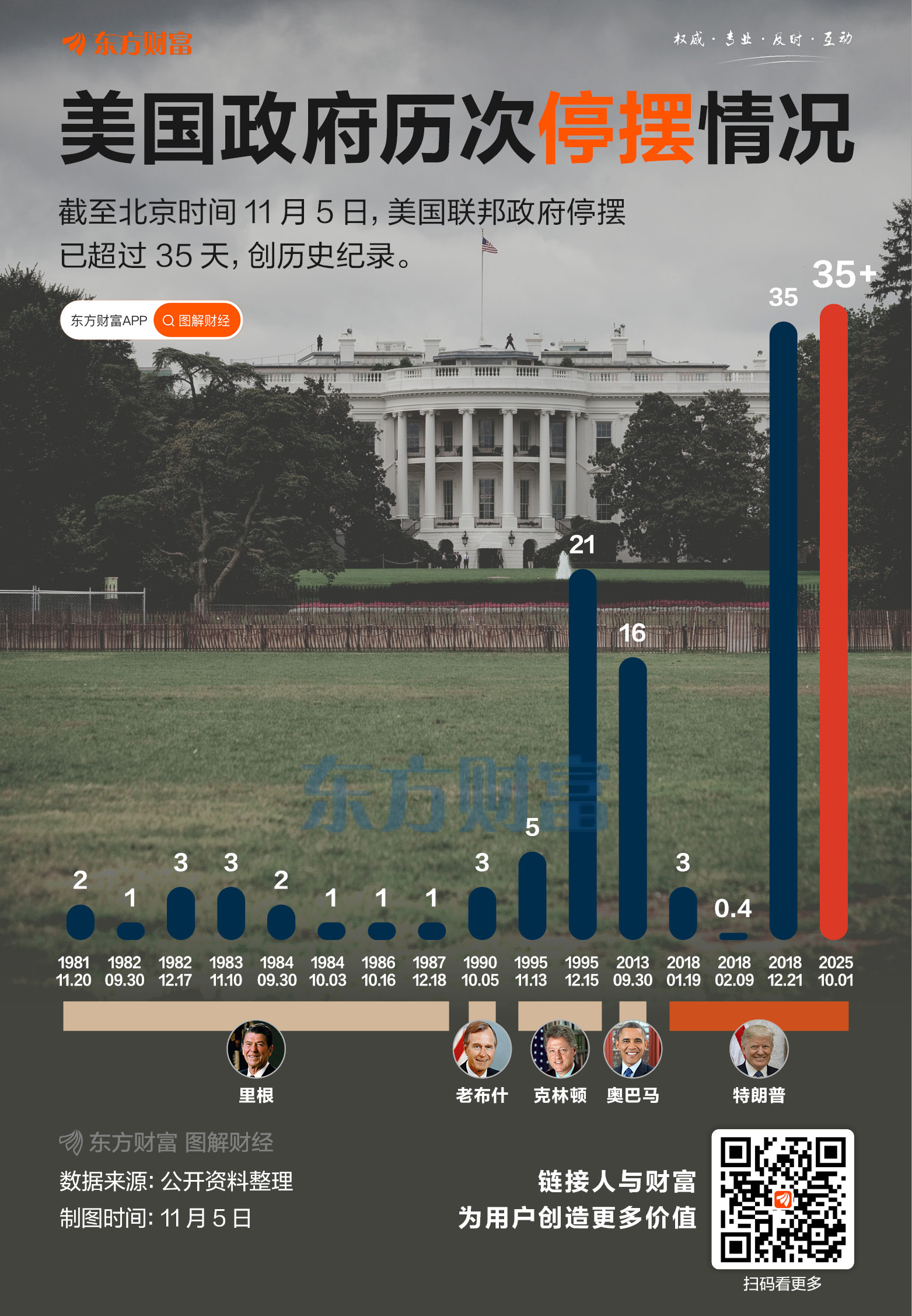 超 35 天创纪录!一图速览美国政府历次停摆