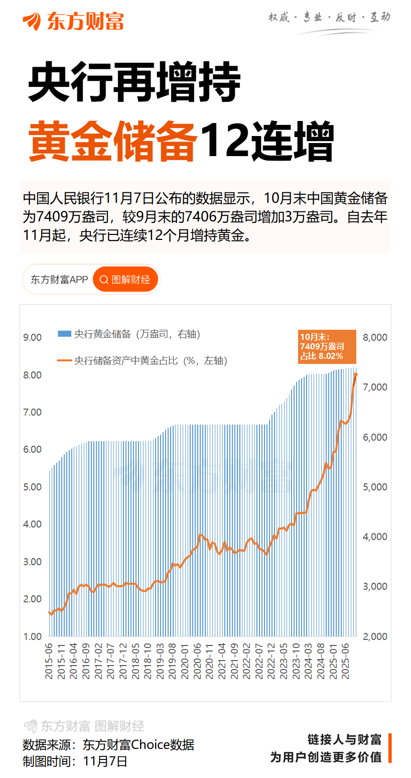 全球央行持续增持黄金。从 2024 年 11 月至 2025 年 9 月止,我国已连续 11 个月增持黄金。2025 年前三季度,我国增持黄金 23.95 吨,截至 9 月底,我国黄金储备为 2303.52 吨。