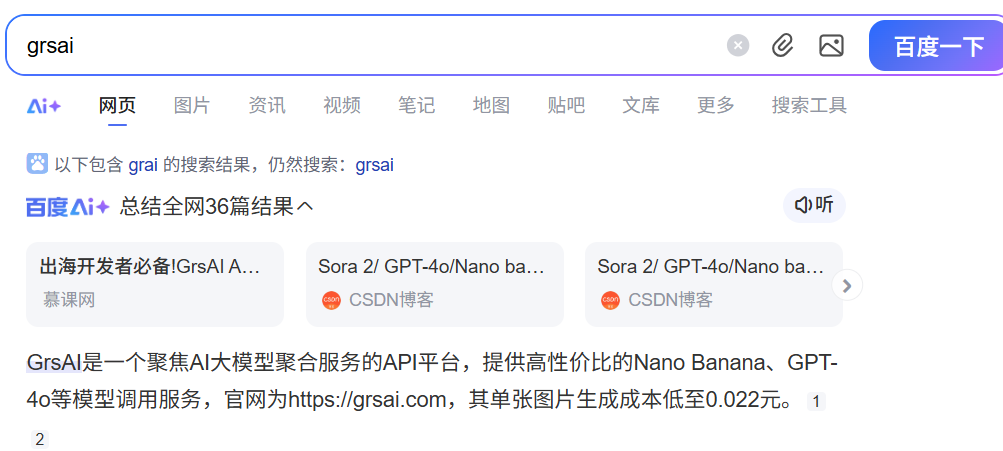 精准触达:当开发者在百度搜索相关问题时,我的文章成为了他们的 「答案」,并自然地将高意向流量引导至 GrsAi API 平台。