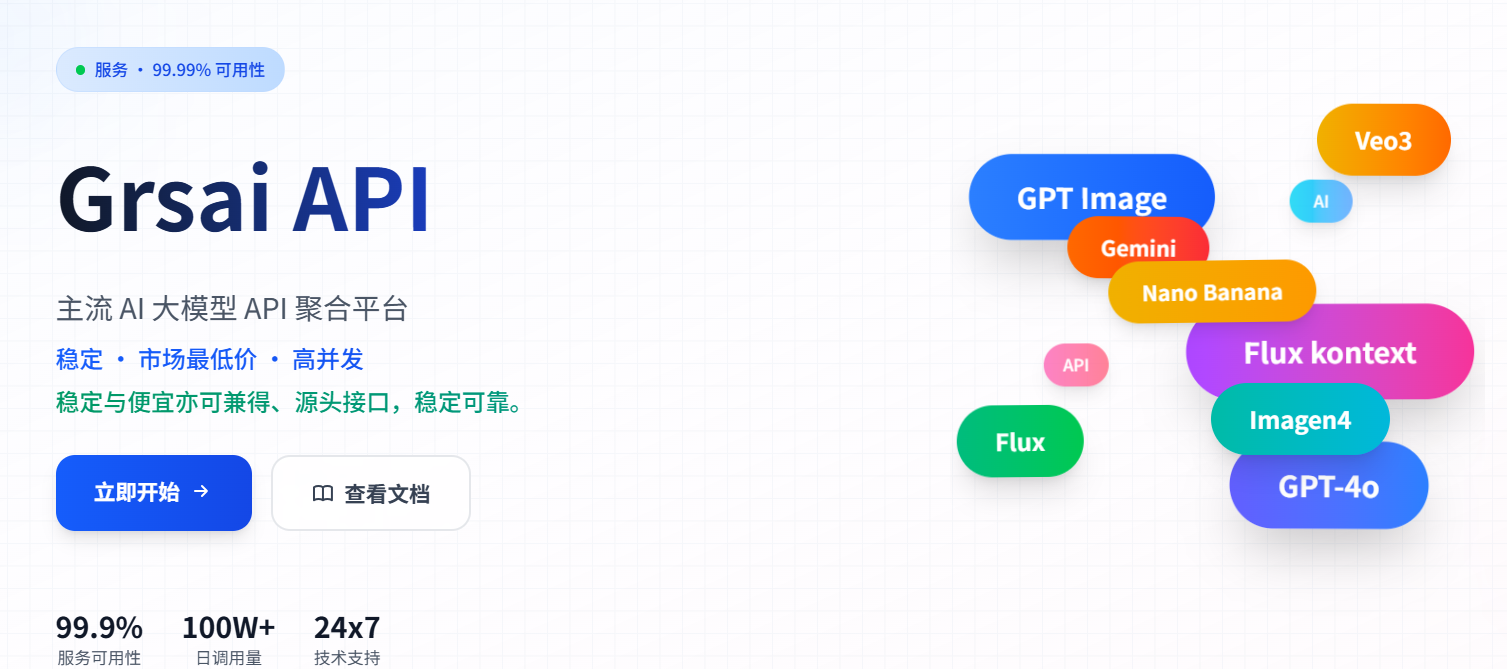 源头服务,低价稳定:市场上很多 API 服务是中间商,价格偏高且稳定性一般。而 GrsAi 作为源头供应商,我自己搭建和维护整个服务器集群,砍掉了所有中间成本,将价格压到最低 (才能吸引用户) 这让我们能提供极具竞争力的价格和远超同行的稳定性。「便宜又稳定」 是我们收到最多的用户评价。