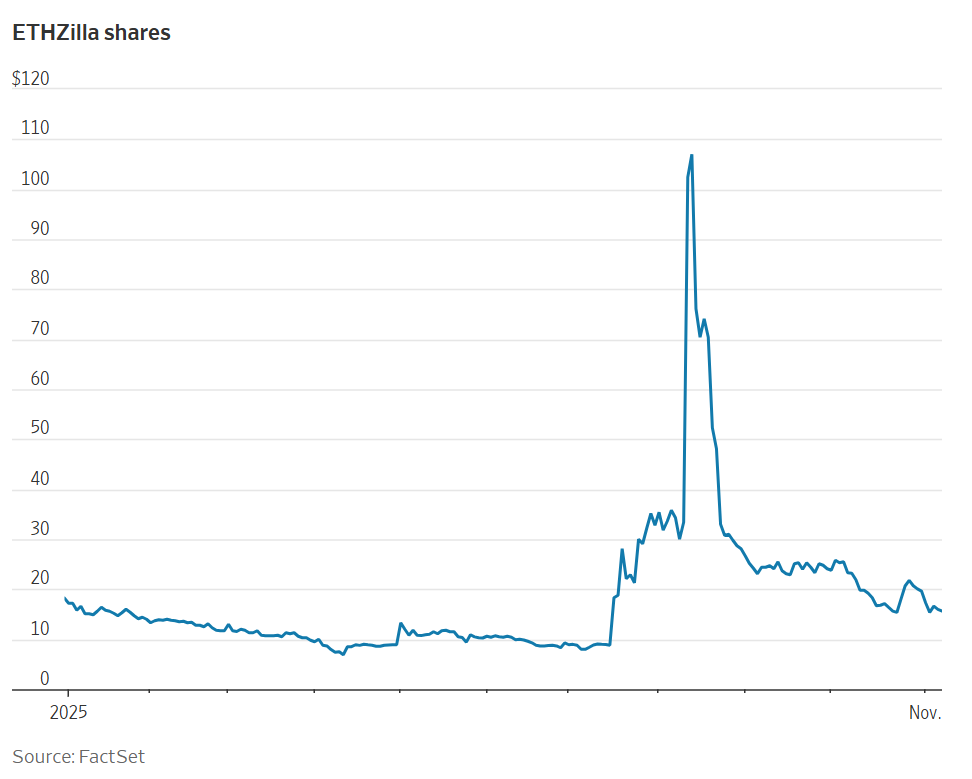 这曾是今年大半年里的 「首选交易」:卖出股票或借款,再将资金大举投入比特币、以太坊及其他加密货币。投资者推高了这些 「加密货币财库公司」 的股价,将其视为放大波动剧烈的加密货币市场押注收益的工具。