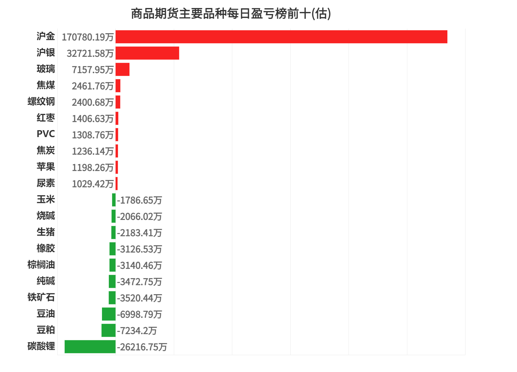 今日商品期货上榜机构席位中沪金盈利第一,为 170780.19 万元。