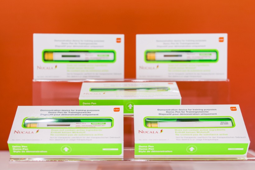 葛兰素史克(GSK) 在此次进博会上展示了靶向人源抗白介素-5(IL-5) 单克隆抗体生物制剂美泊利珠单抗。2022 年和 2024 年,这款药物分别在中国获批上市嗜酸性肉芽肿性多血管炎和重度嗜酸粒细胞性哮喘适应证,今年又上市了慢性鼻窦炎伴鼻息肉适应证,除了惠及更广泛的患者群体,该药也帮助患者从简单的 「缓解症状」 提升到 「实现疾病的长期稳定」。GSK 副总裁、中国医学事务部负责人柯玉雄在进博会期间表示,展望 GSK 未来的管线布局,公司正在探索将重度哮喘和慢性鼻窦炎伴鼻息肉的治疗升级为六个月注射一次的可能性。