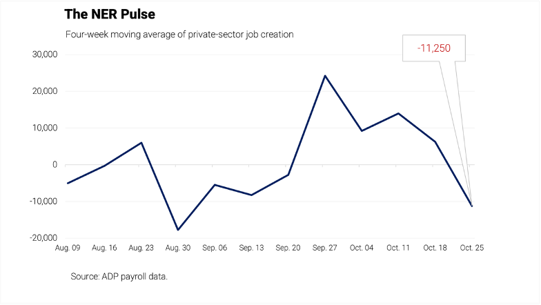 ADP 周二发布的数据显示,在截至 10 月 25 日的四周内,美国企业平均每周裁员 11250 人。该数据表明,与 10 月上半月相比,劳动力市场在当月下半月出现放缓。