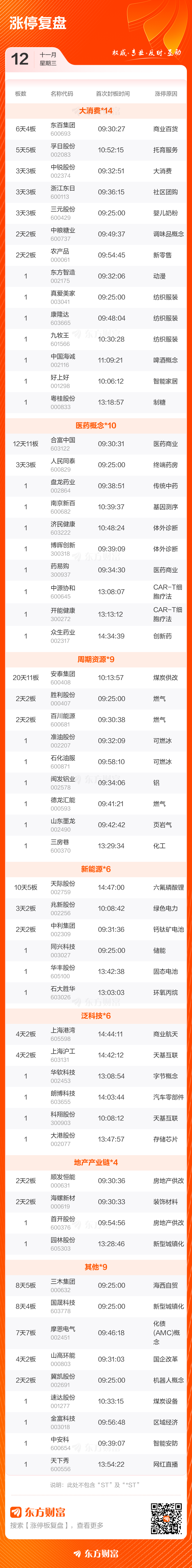 11 月 12 日涨停复盘:77 只股涨停 合富中国 12 天 11 板