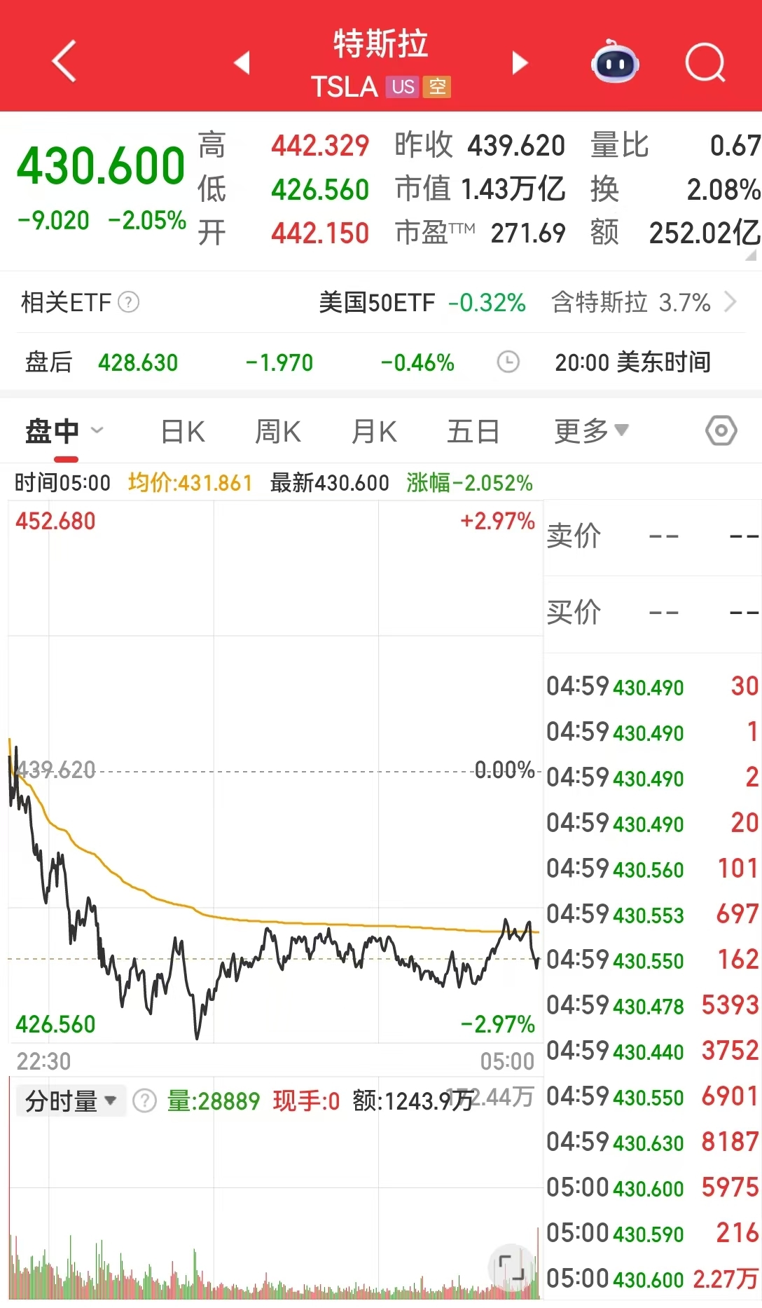 截至当地时间 11 月 12 日美股收盘,特斯拉报 430.6 美元,跌幅 2.05%,市值 1.43 万亿美元。