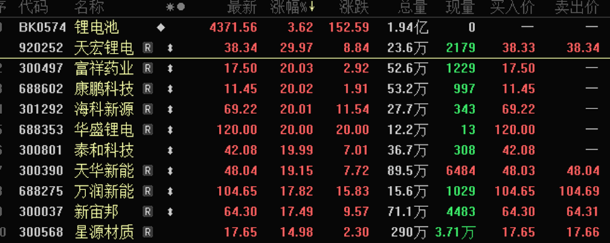 相关概念更是掀起涨停潮,富祥药业、华盛锂电、海科新源、泰和科技等个股均收获 「20cm」 涨停。