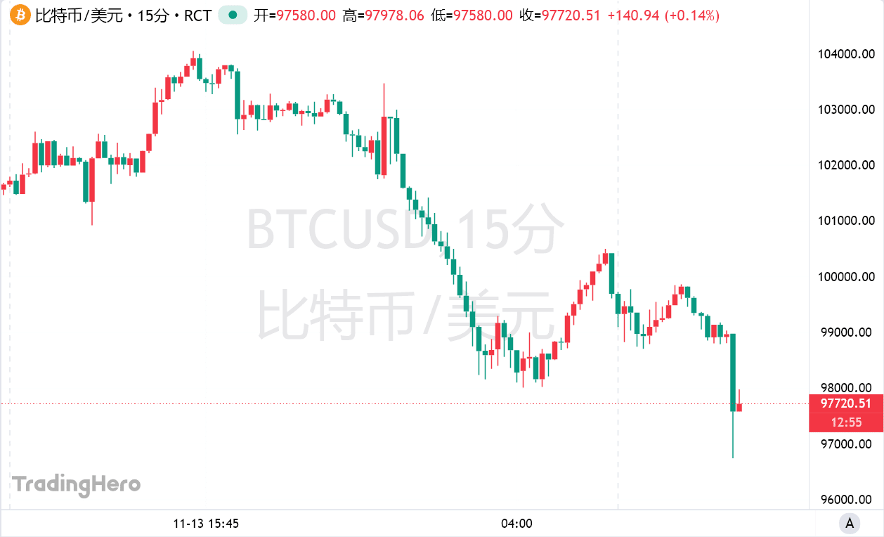血腥抛售!比特币暴跌至 97000,熊市獠牙尽显
