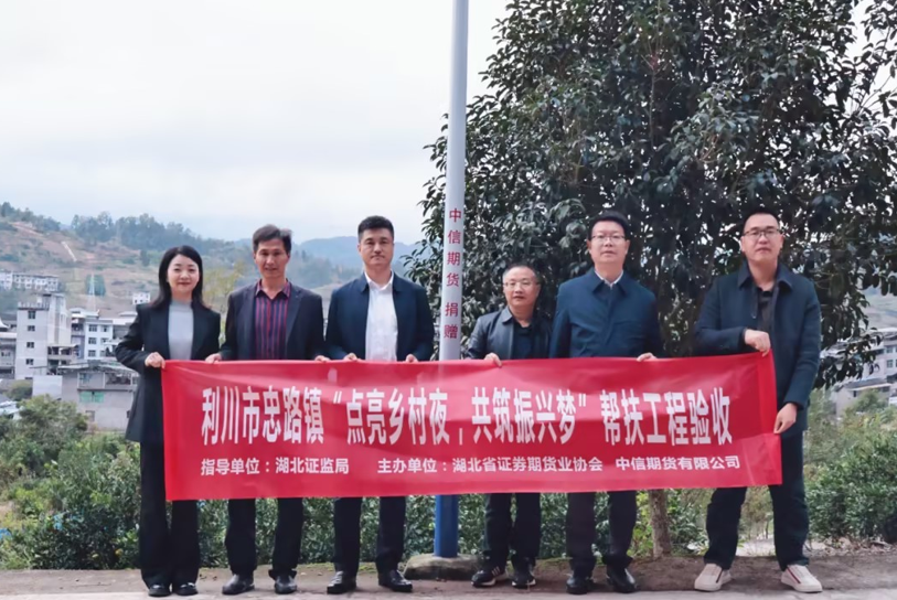 此次利川之行,不仅是一次新的出发,也是一次温暖的 「回顾」。公司代表对 「点亮乡村夜,共筑振兴梦」 帮扶工程进行了实地验收。该项目在湖北证监局指导下,由中信期货与湖北省证券期货业协会共同推动,捐建的 100 盏太阳能路灯已点亮忠路镇近 3 公里主干道,有效保障村民夜间出行安全。这项 「光明工程」 的圆满落地,是中信期货承诺兑现、持续赋能乡村的生动体现。