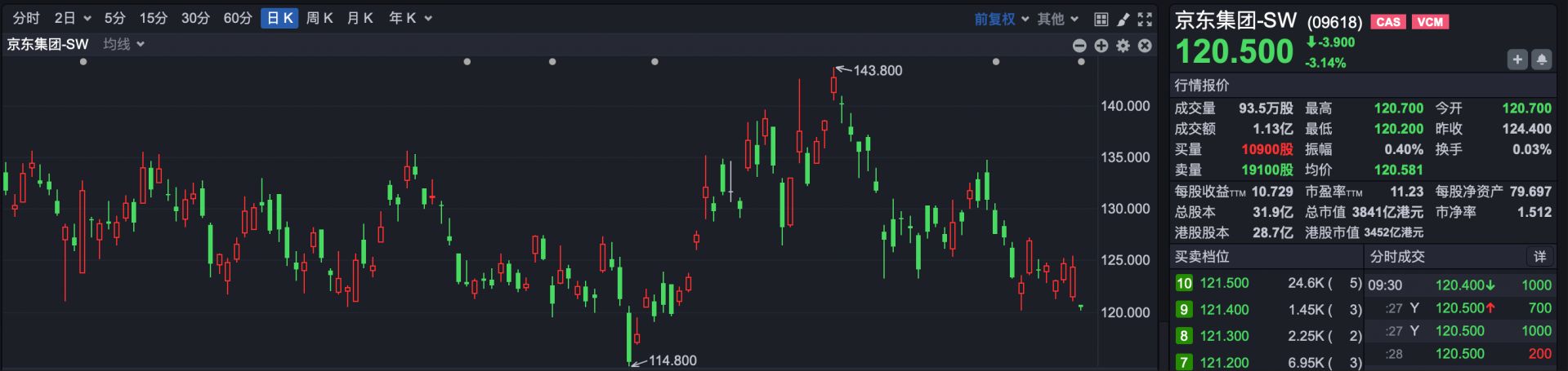 京东集团 (09618.HK) 三季度净利润出现下滑,早盘低开 2.97%。公告显示,京东第三季度总收入人民币 2990.59 亿元,同比增加 14.85%;净利润 52.76 亿元,同比减少 55.03%。