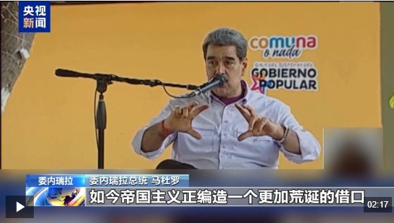 委内瑞拉总统 马杜罗:如今帝国主义正编造一个更加荒诞的借口。因为他们不能说,马杜罗拥有大规模杀伤性武器,无法说我们藏匿了生化武器,于是就编造出这样一套离奇的说辞。这套说辞极其虚假,根本站不住脚,也没人会相信,首先美国民众就不会信。