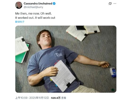 此外,他再度在社交媒体上发布了一张 「大空头」 的剧照,隐喻 「此时此刻正如彼时彼刻」,而这一切终将水落石出。