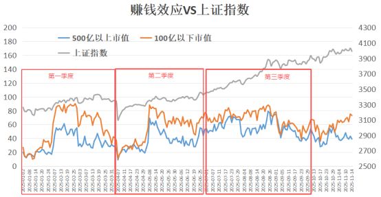此外,从上图可以看出,500 亿元以上市值的公司和 100 亿元以下市值的公司,情绪指数是背离的,这预示着后面小市值公司大概率还会有一次调整,让大小市值一起触底,普涨行情才会重新酝酿。从下周一到 12 月 31 日,还有 33 个交易日,足够一次充分调整了。