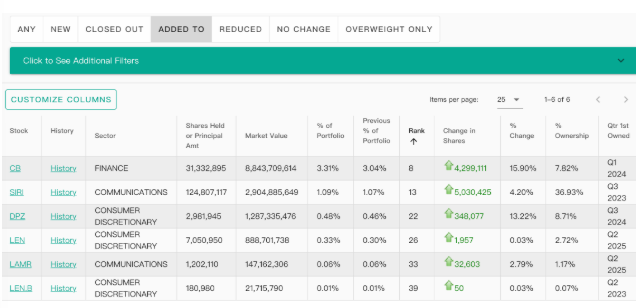 在增持方面,伯克希尔还在三季度增持了安达保险(CB)、莱纳建筑 (LEN)、达美乐比萨(DPZ)、Sirius XM(SIRI)、拉马尔户外广告(LAMR) 等标的。
