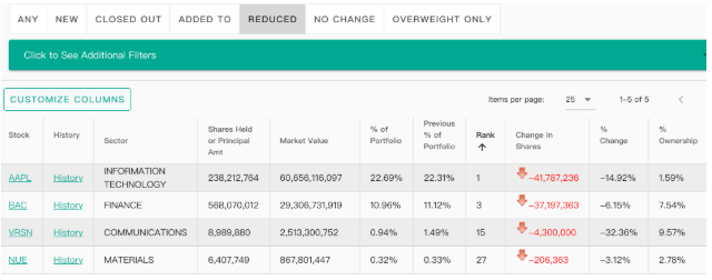 第三季度,伯克希尔还减持了美国银行(BAC) 约 3720 万股,减持比例约为 6%;减持威瑞信(VRSN)430 万股,减持比例约为 32%;减持纽柯钢铁(NUE) 约 21 万股,减持比例约为 3%。