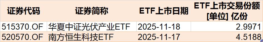 目前有 2 只 ETF 披露下周上市,跟踪标的为光伏产业、恒生科技等,目前暂无 ETF 披露下周发行。