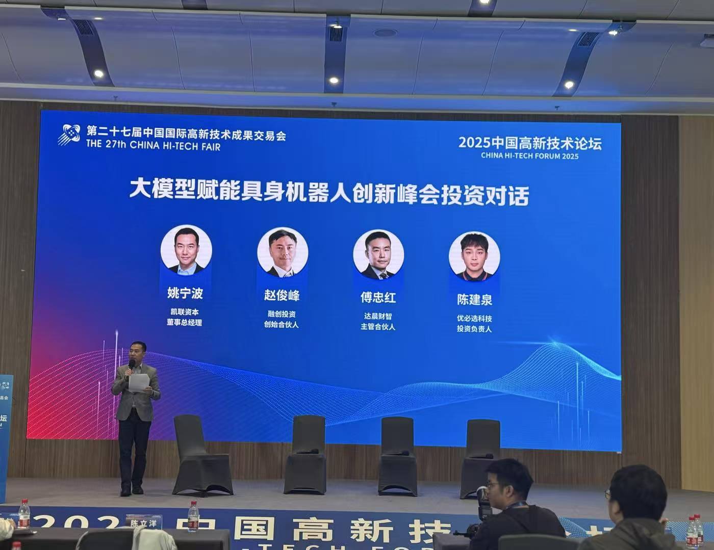 值得关注的是,作为高交会的核心论坛之一,「大模型赋能具身机器人创新峰会投资对话」(以下简称 「峰会」) 吸引了来自凯联资本、融创投资、达晨财智、优必选科技等机构和企业的嘉宾。与会者围绕具身智能行业融资泡沫争议、赛道格局、技术落地及创业方向等核心议题展开深度对话,为行业发展与投资决策提供了参考视角。
