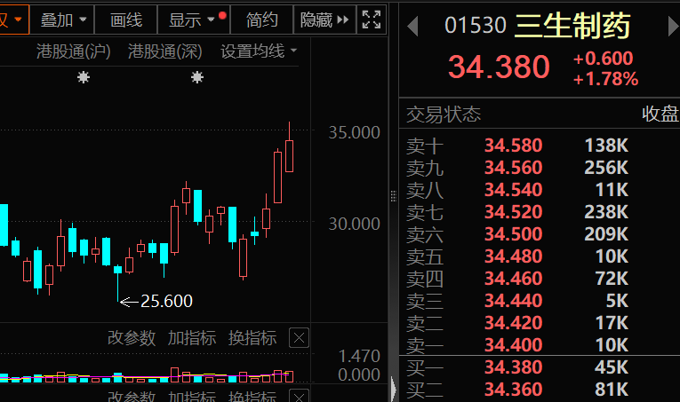 三生制药本周连续五个交易日实现上涨,其中周四 (11 月 13 日) 上涨 10.18%,公司具有创新药概念,本周创新药板块 A 股港股集体上涨。数据显示,港股创新药板块中,10 股本周上涨超过 10%,派格生物医药-B、三生制药、映恩生物-B 涨幅居前,分别为 22.93%、19.29%、18.81%。