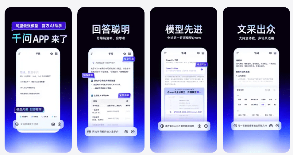 千问 APP 依托 Qwen 系列大模型打造。Qwen 自 2023 年全面开源以来,性能超越 Llama、Deepseek 等国际开源模型,全球下载量突破 6 亿次。