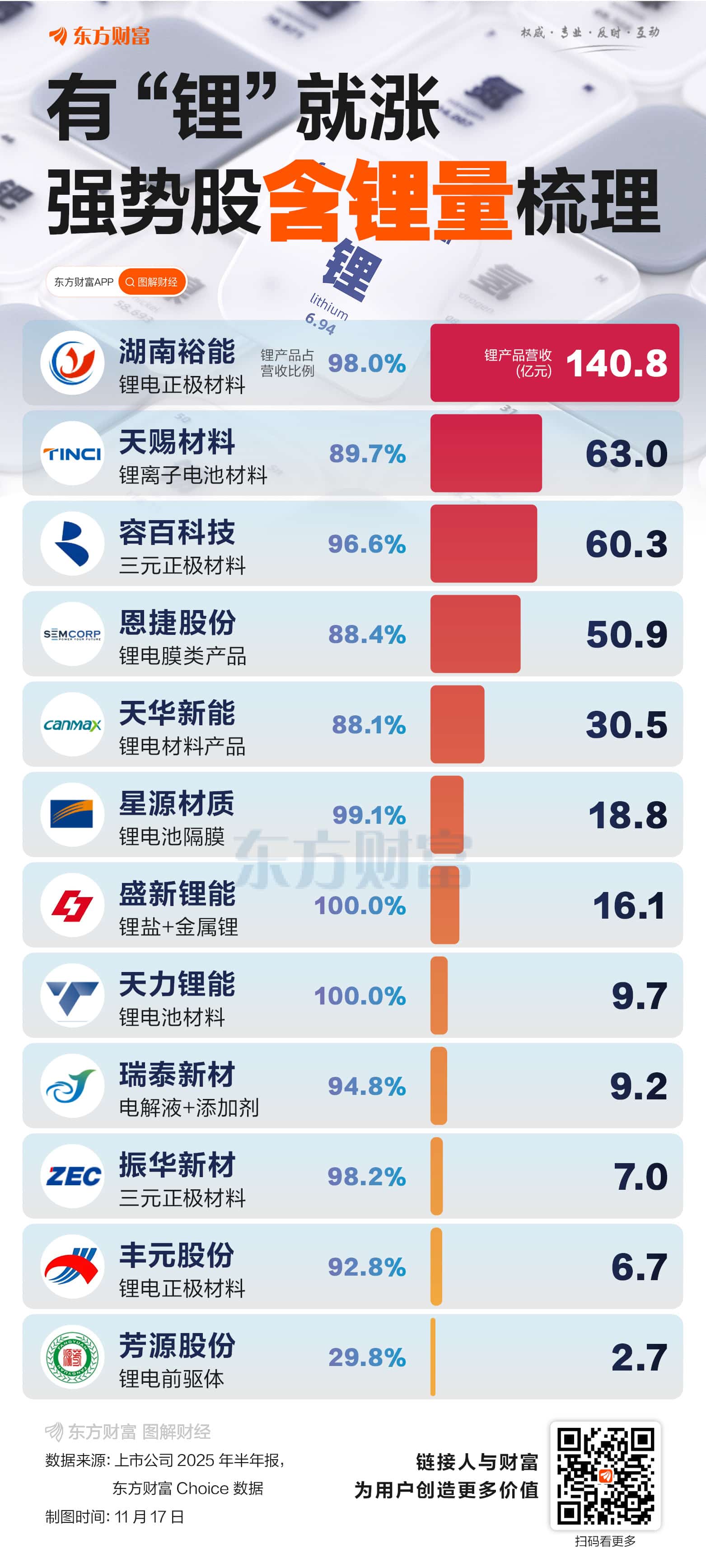 而拉长时间范围看,东方财富Choice 数据显示,自今年 10 月以来,锂电池概念股就表现强势,其中天华新能大涨超 139%,盛新锂能涨超 89%,芳源股份、丰元股份、深圳新星、天力锂能等个股区间涨幅在 70% 至 39% 之间不等。