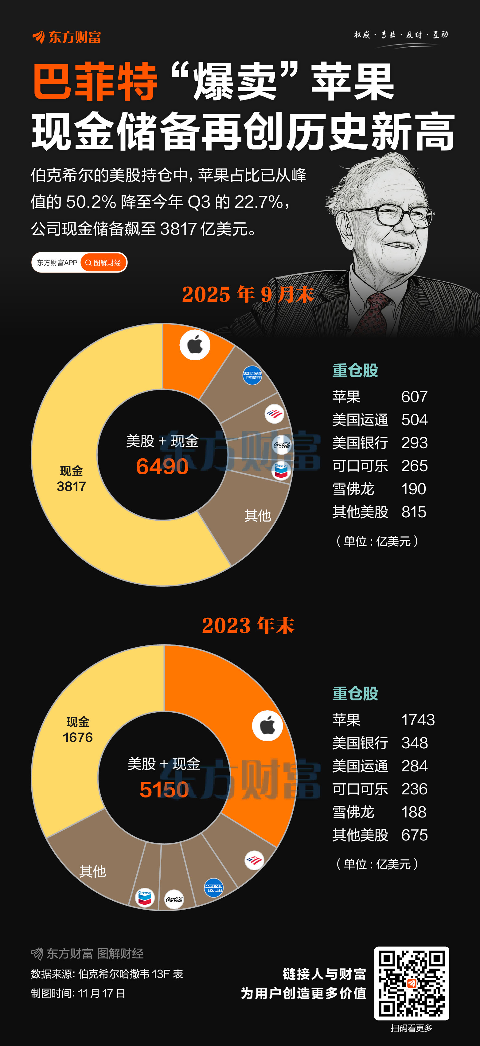 爆卖苹果 手握 2.7 万亿!一图了解巴菲特持仓变化