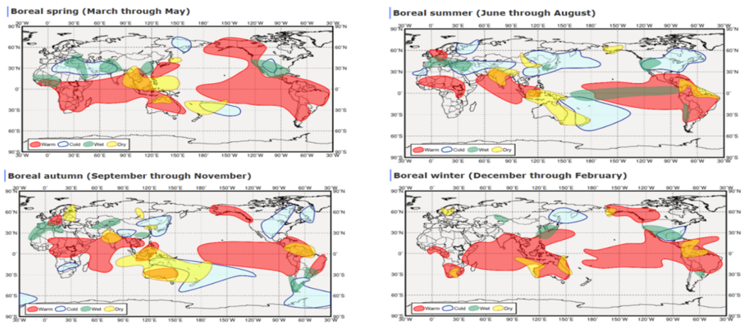 图 3:厄尔尼诺在不同时间对全球气候的经典影响