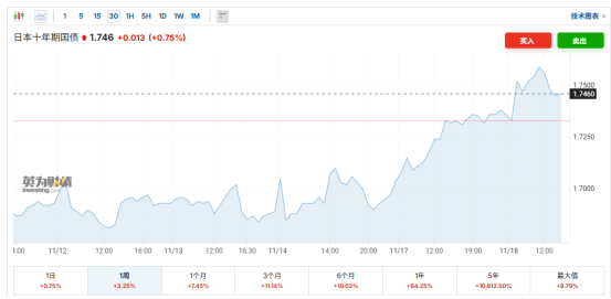 由于投资者权衡首相高市早苗可能推出的大规模财政刺激计划的影响,日本 10 年期国债收益率今天一度攀升至 1.75% 以上,接近 2008 年以来的最高水平。