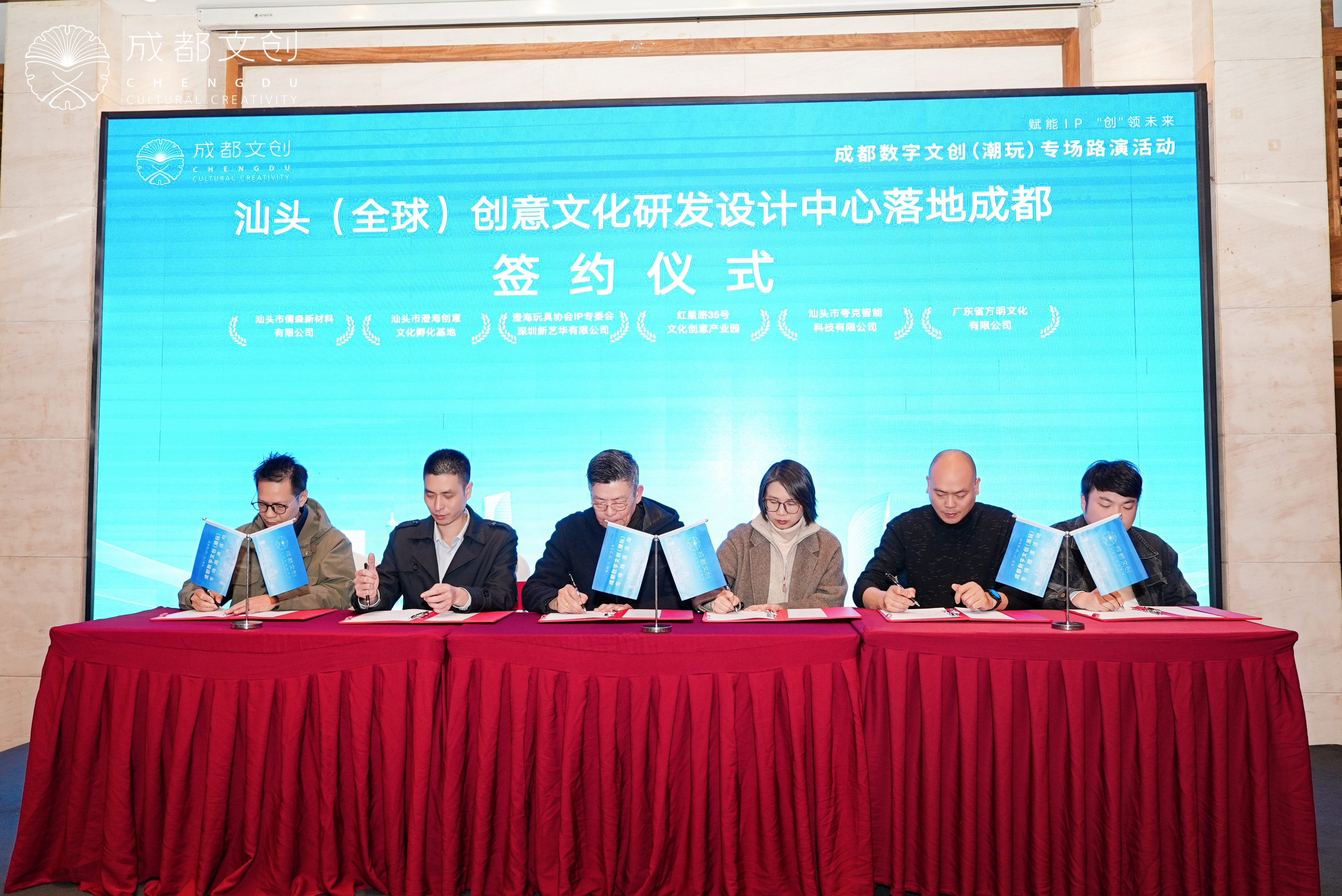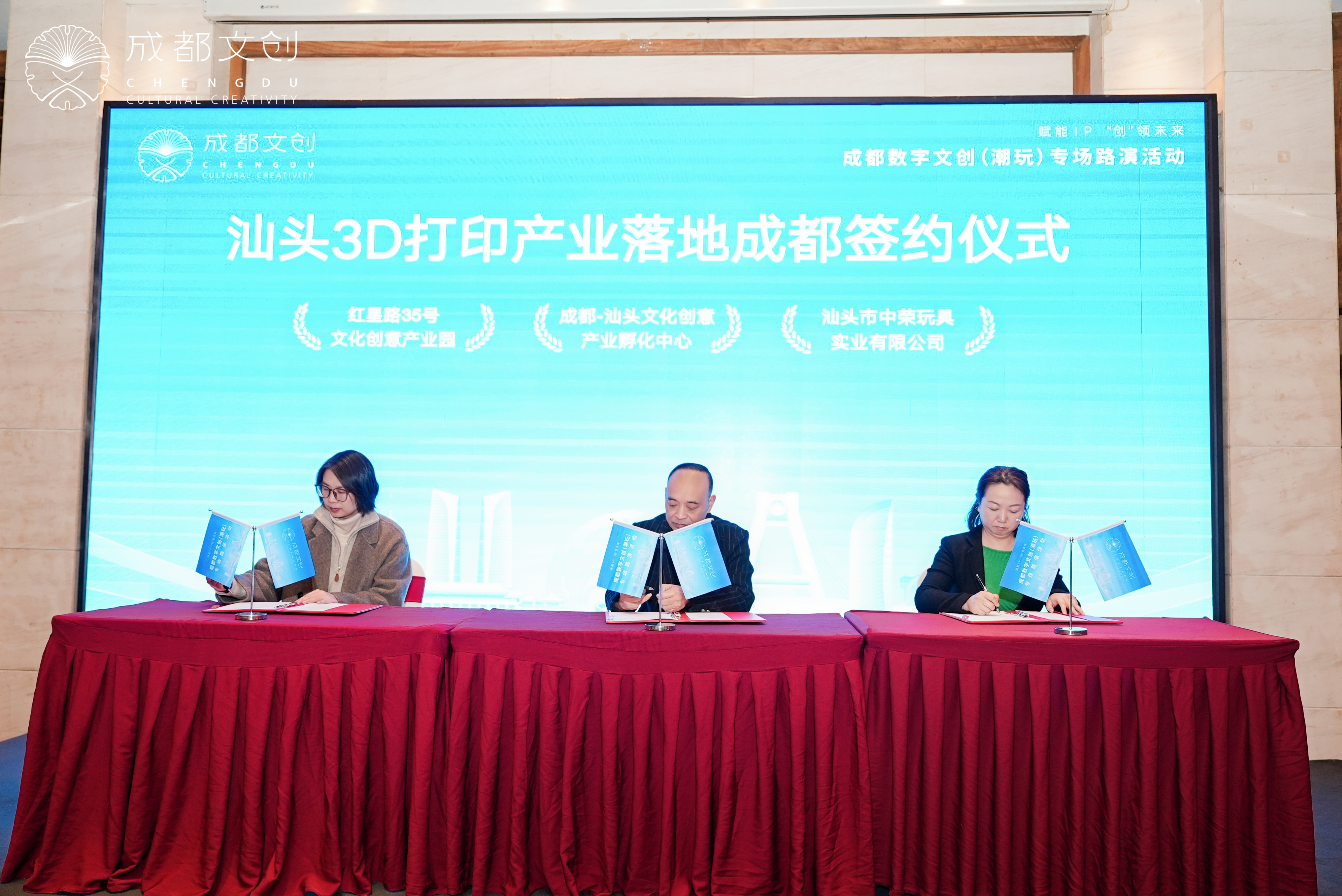 作为成都持续以潮玩为核,深化与沿海产业先发地区深化合作的一个重要载体,本次专场路演活动还重点举行了汕头 (全球) 创意文化研发设计中心落地成都签约仪式以及汕头 3D 打印产业落地成都签约仪式。