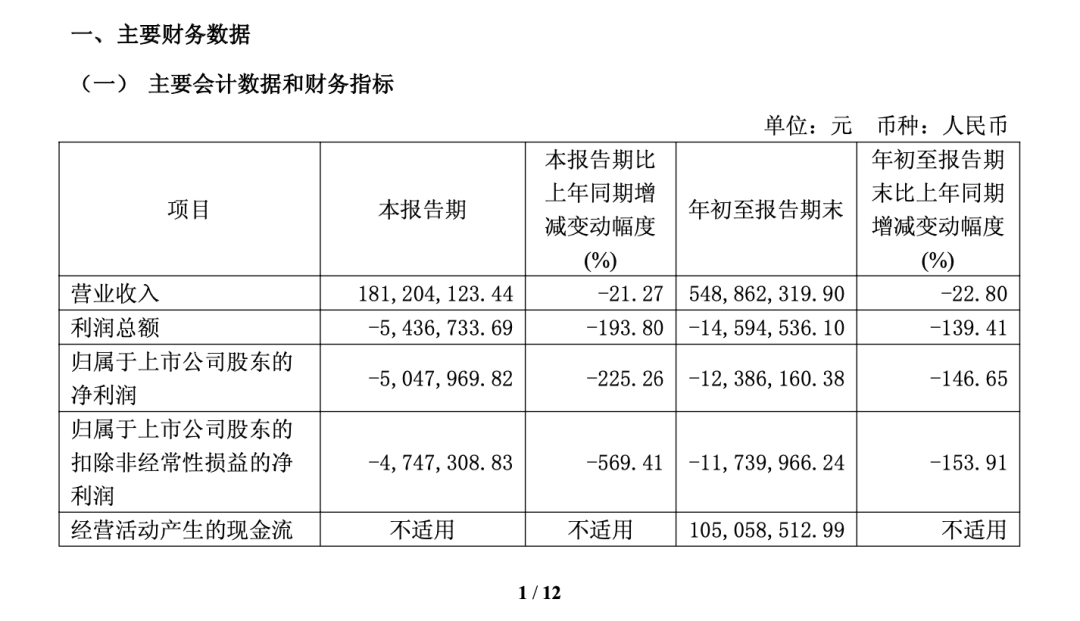 合富中国公告称,公司主营业务未发生重大变化,且处于亏损状态。公司 2025 年第三季度归属上市公司股东的净利润为-504.80 万元,较上年同期下降 225.26%。