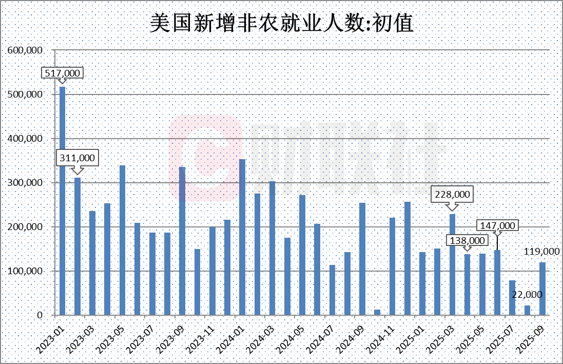 在 「迟到 48 天」 之后,美国劳工统计局终于将于周四公布 9 月非农就业数据。美国 9 月非农就业人数增加 11.9 万人,市场预估为增加 5.2 万人,前值为增加 2.2 万人。