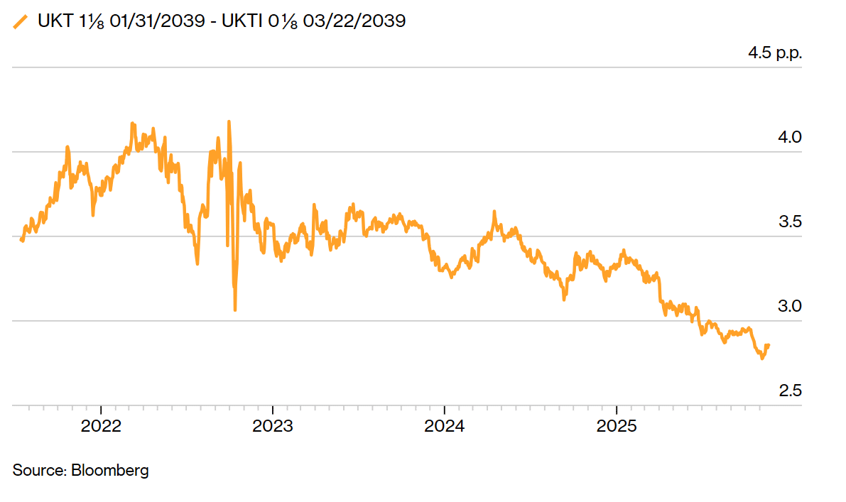 Capleton 和 Stengeryte 强调了在进行此项交易时精挑细选的重要性,他们首选的头寸是 2039 年到期的通胀挂钩债券。