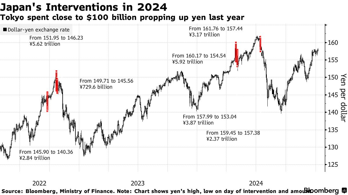 市场参与者正紧盯 160 这一关口,日本当局去年曾多次在该区间入市干预。其中一次干预发生在假日周末前的周五深夜,而日本下周一将迎来另一个全国性假日。