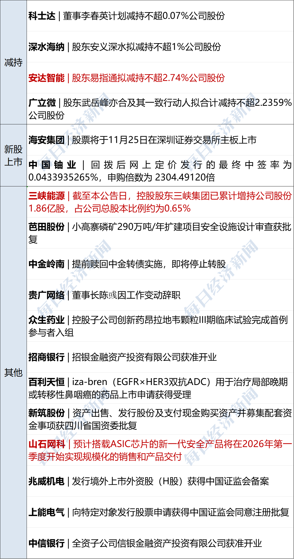 闻泰科技 (SH600745,股价 42.36 元,市值 527.23 亿元):11 月 23 日,闻泰科技官方微信号发布关于敦促安世荷兰切实回应沟通解决控制权问题以保障全球供应链稳定的声明。声明称,尽管我方展现出最大诚意,安世荷兰方面迄今未对我方的沟通提议作出任何实质性回应。鉴于此,我们要求安世荷兰能在切实尊重事实和法律的基础上,就如何恢复闻泰科技的合法控制权与完整股东权利,提出具有建设性且真正富有诚意的解决方案。